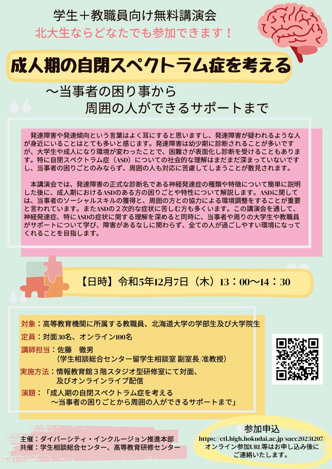| 共催 | 学生相談総合センター、高等教育研修センター |