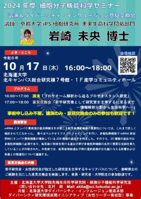 | 主催/共催 | 主催:北海道大学大学院先端生命科学研究院・細胞分子機能科学研究室 共催:北海道大学ダイバーシティ・インクルージョン推進本部 |