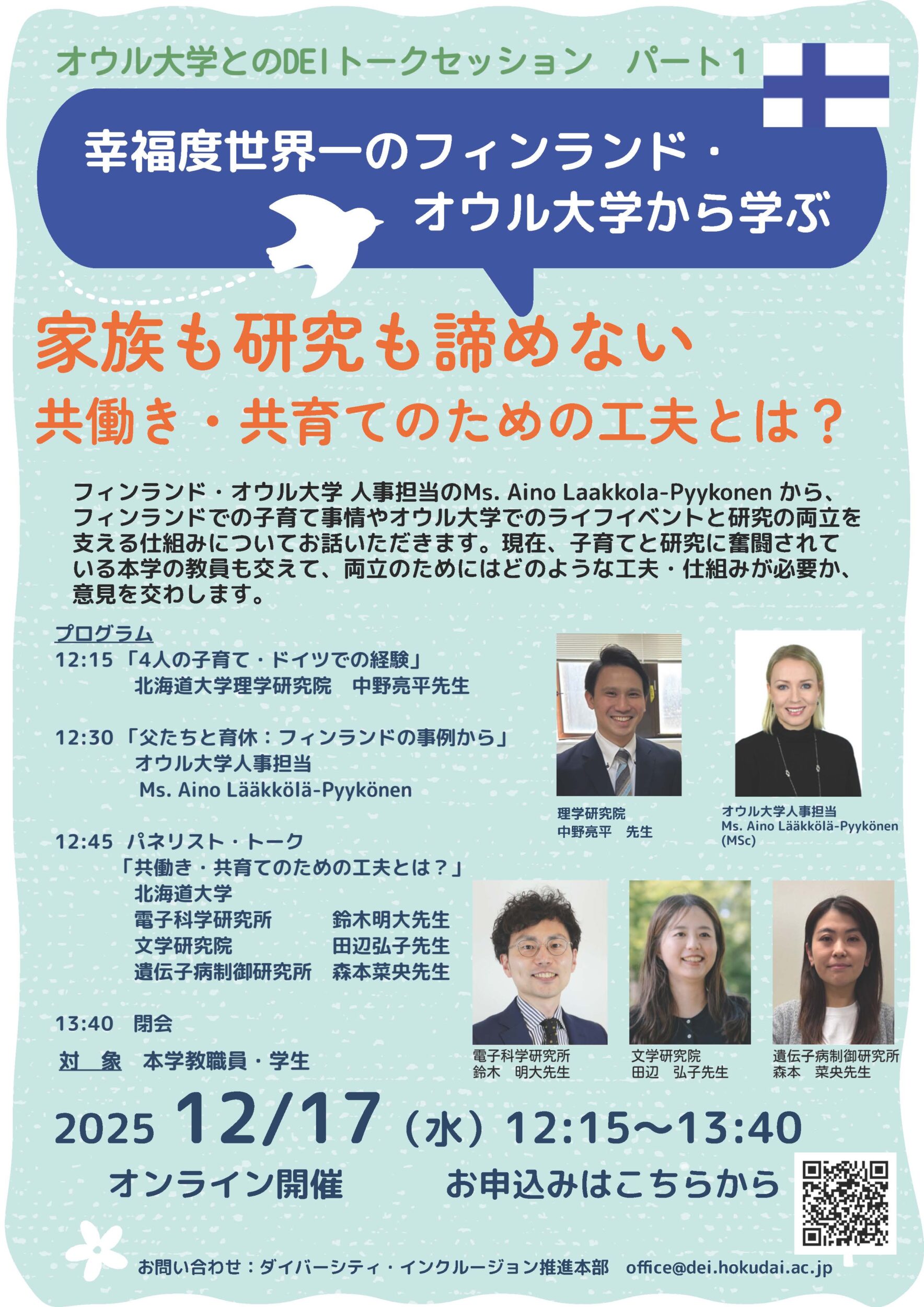 | 主催 | 北海道大学ダイバーシティ・インクルージョン推進本部 |